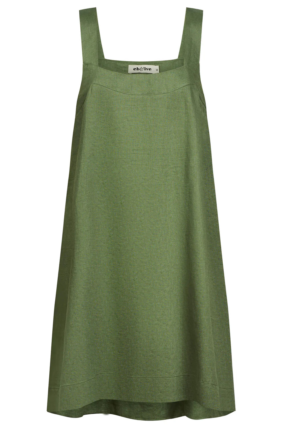 Crafted from 100% linen for breathable, lightweight comfort. Designed with a square neckline, wide shoulder straps, and a relaxed silhouette that falls to the knee. Features functional side pockets and is fully lined in white for ease of wear. True to size fit for an effortless feel.