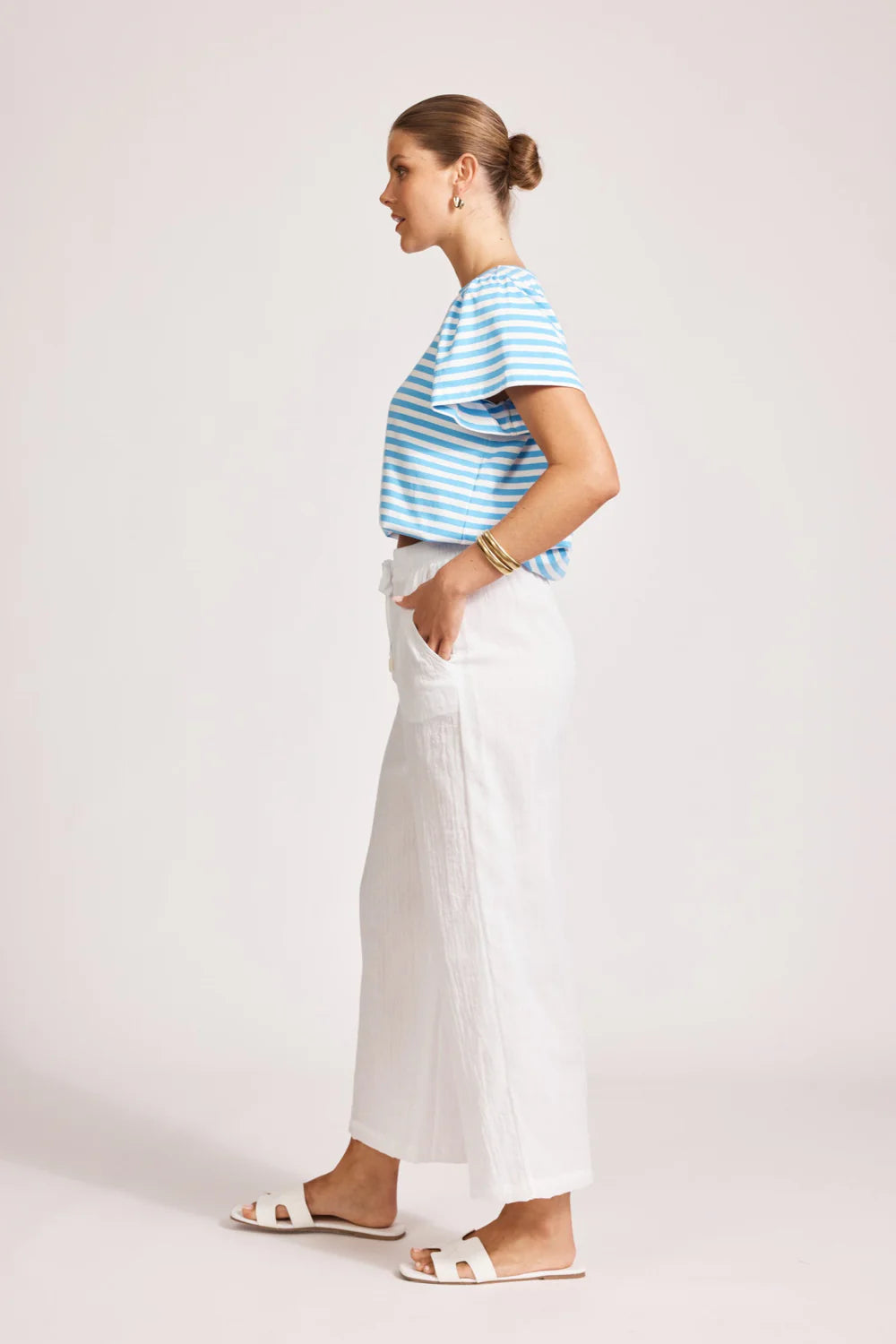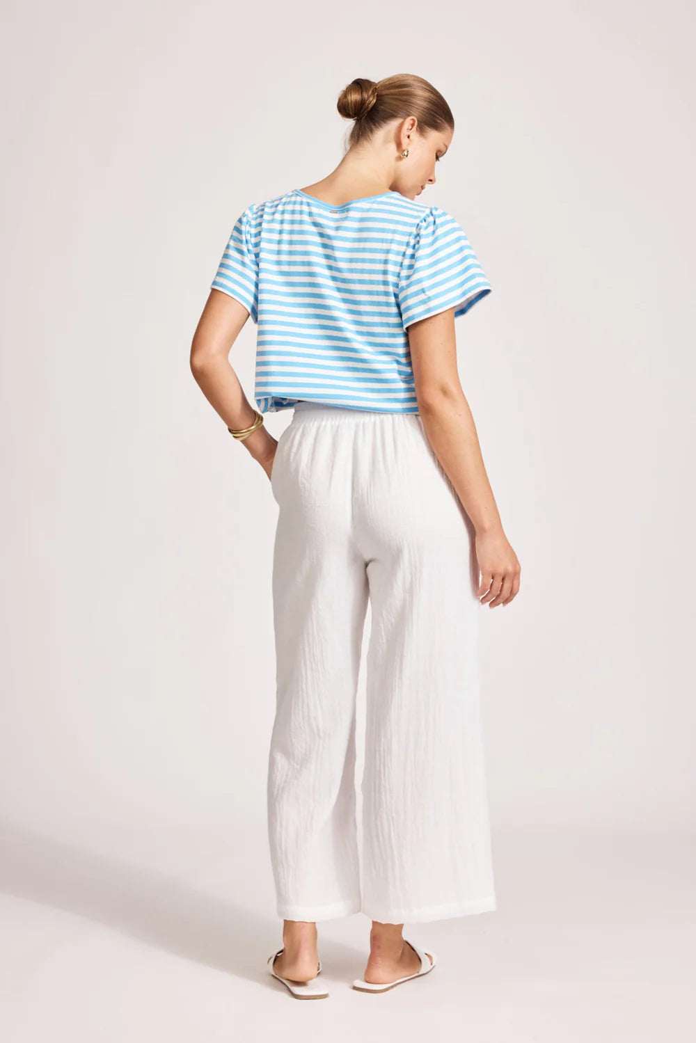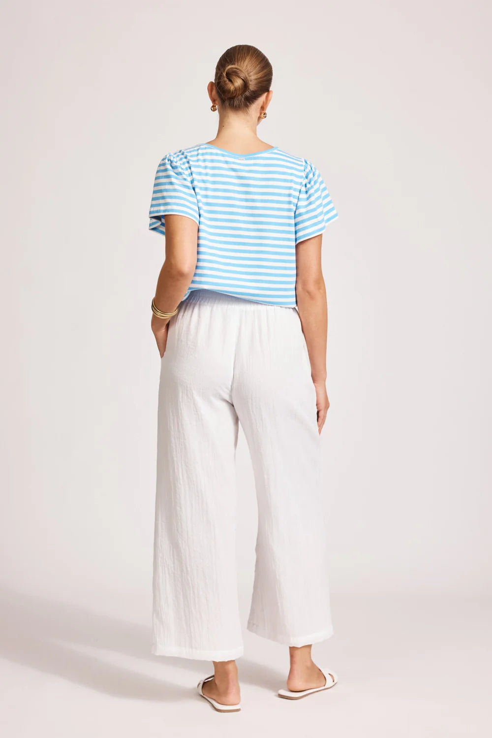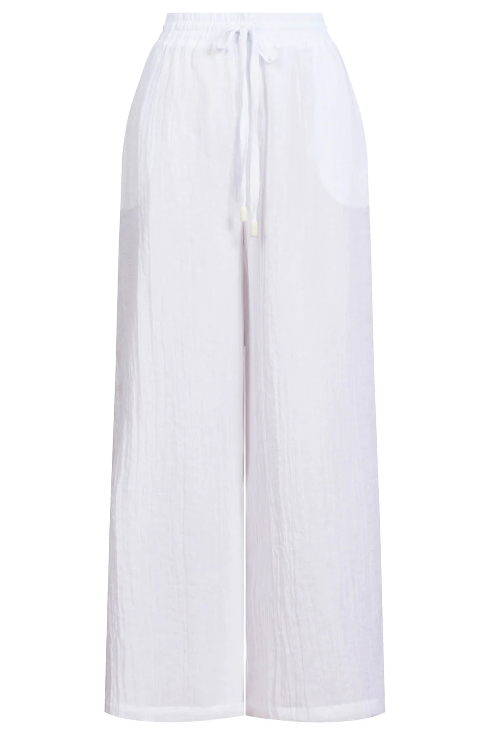 A wardrobe staple crafted in textured cotton-blend fabric. Designed with a drawstring elastic waistband, resin-tipped ties, and double-layered fabric. Finished in a 7/8 length with a relaxed straight leg. Double layered to prevent sheerness.